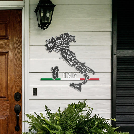 Mappa delle Regioni Italiane e Bandiera Minimalista - Arte in metallo colorato