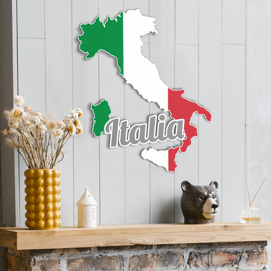 Mappa e testo dell'Italia - Arte in metallo colorato